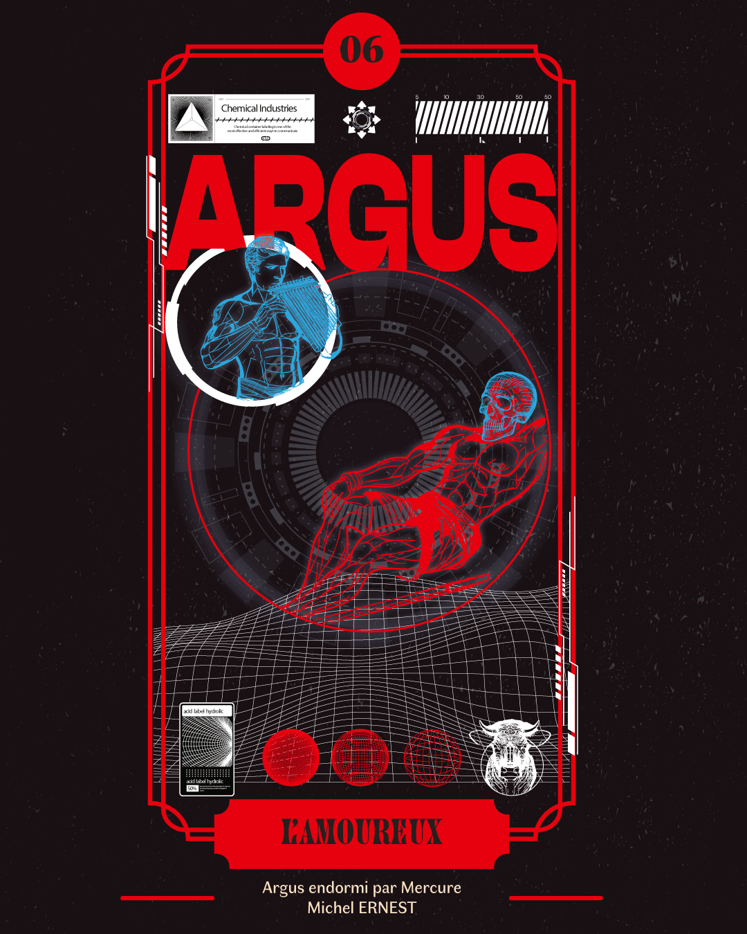 Dans cette reprise, j'ai gardé les points forts de l'œuvre originale et son histoire. Dans l'histoire du tableau, Mercure endort Argus afin de le tuer. J'ai donc représenté Argus endormis avec le signe de la mort couvrant son visage.
