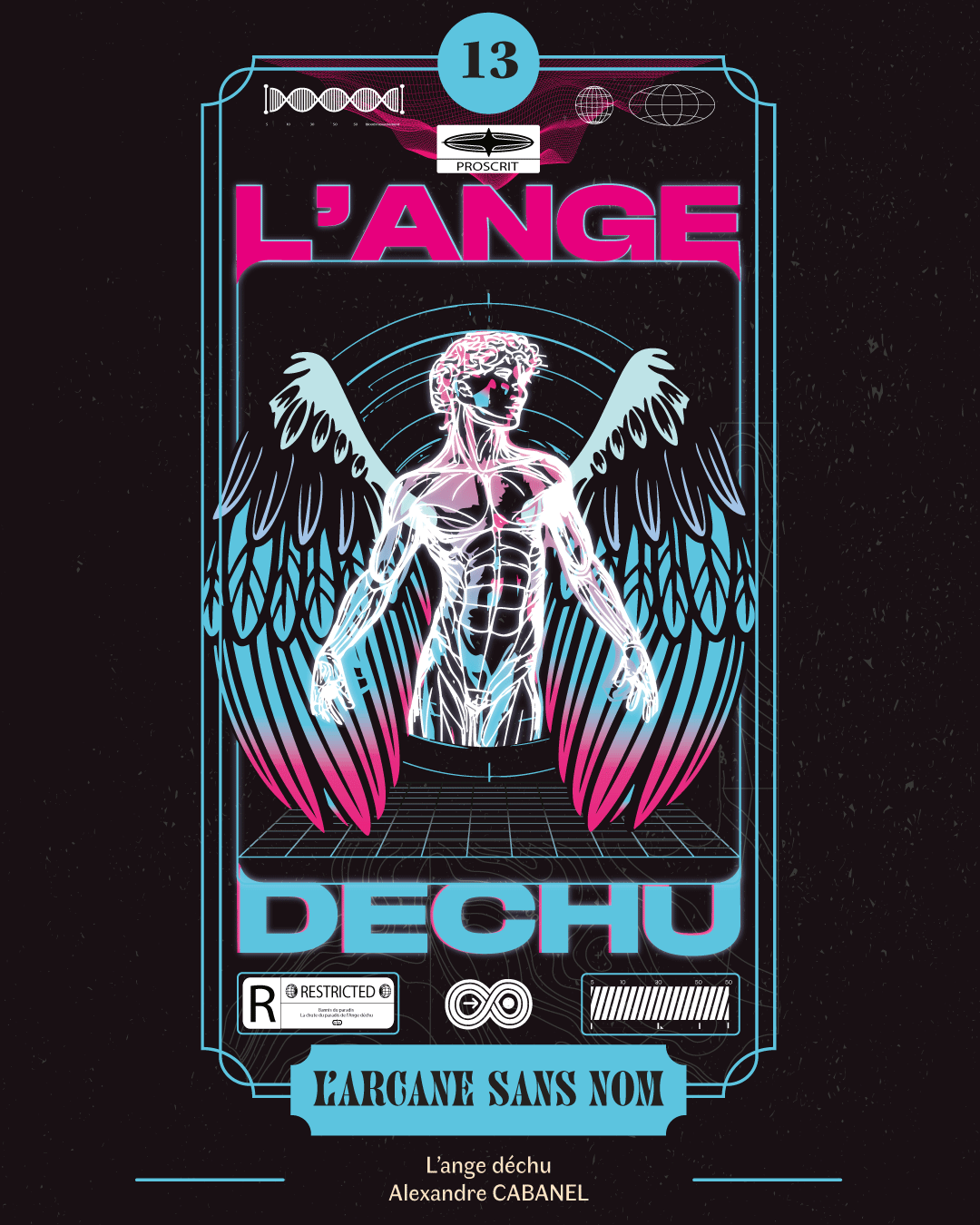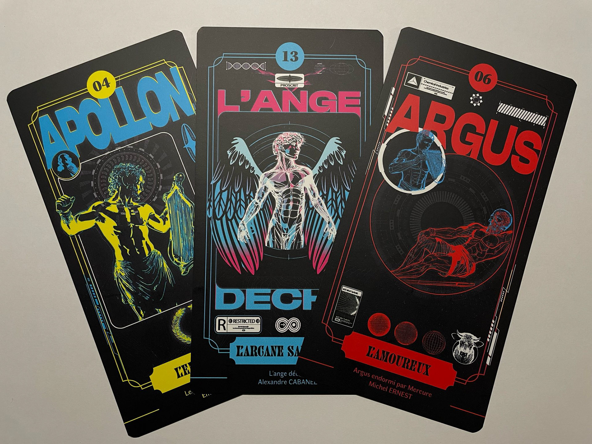 Dans cette reprise, j'ai voulu garder les points forts de l'œuvre originale et son histoire. J'ai gardé les ailes, l'ange étant représenté avec le regard emplis de tristesse et de rage, je l'ai mis au centre de la carte, en posture de force comme s'il se relevait plein de rage prêt en découdre. J'ai ensuite ajouté des artefacts typiques du neo-brutalism avec un effet de lueur diffuse comme si la carte était un néon dans la nuit.
