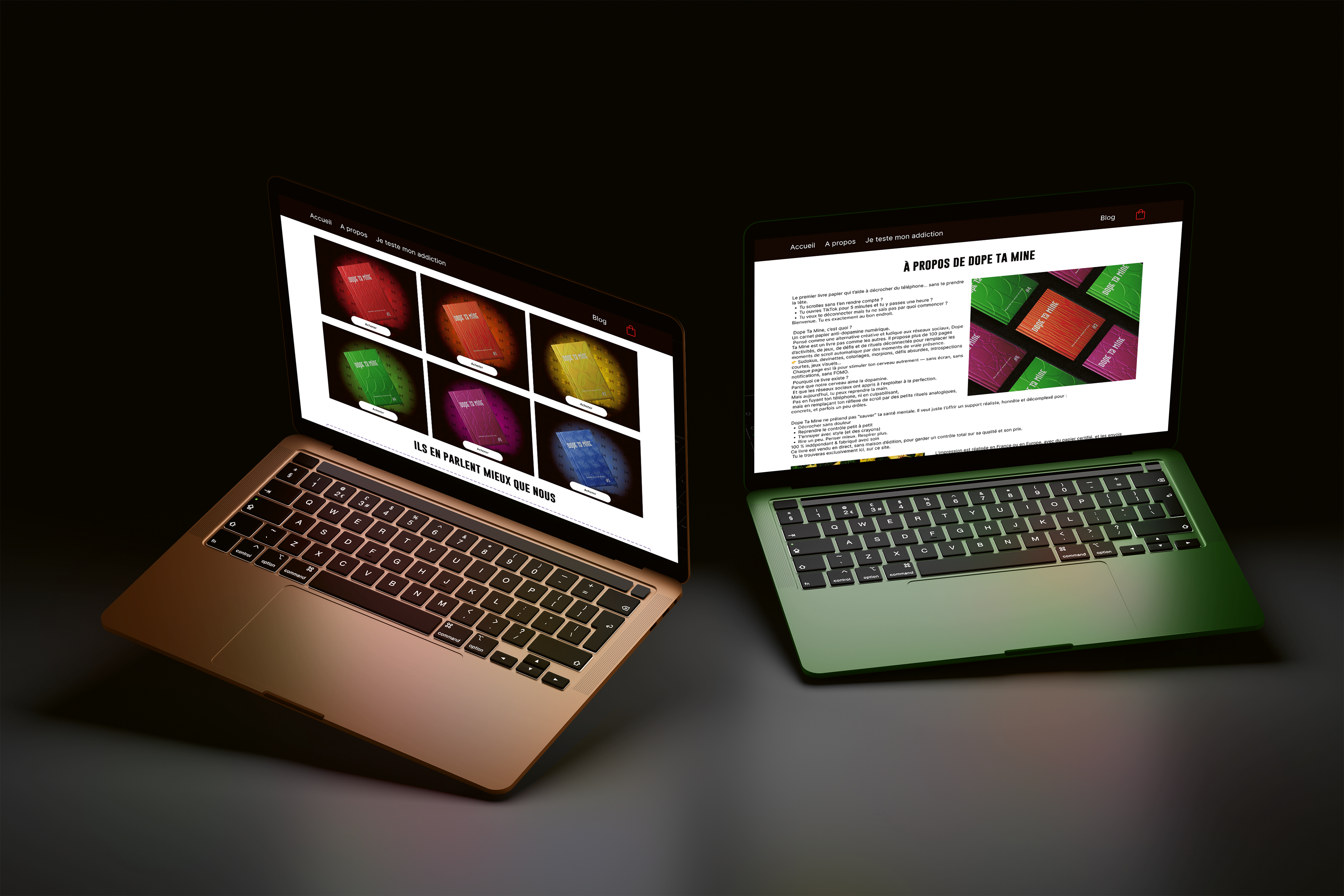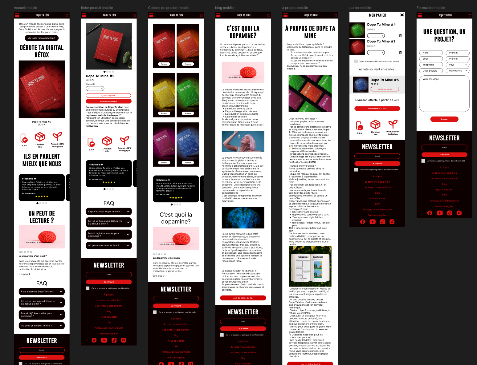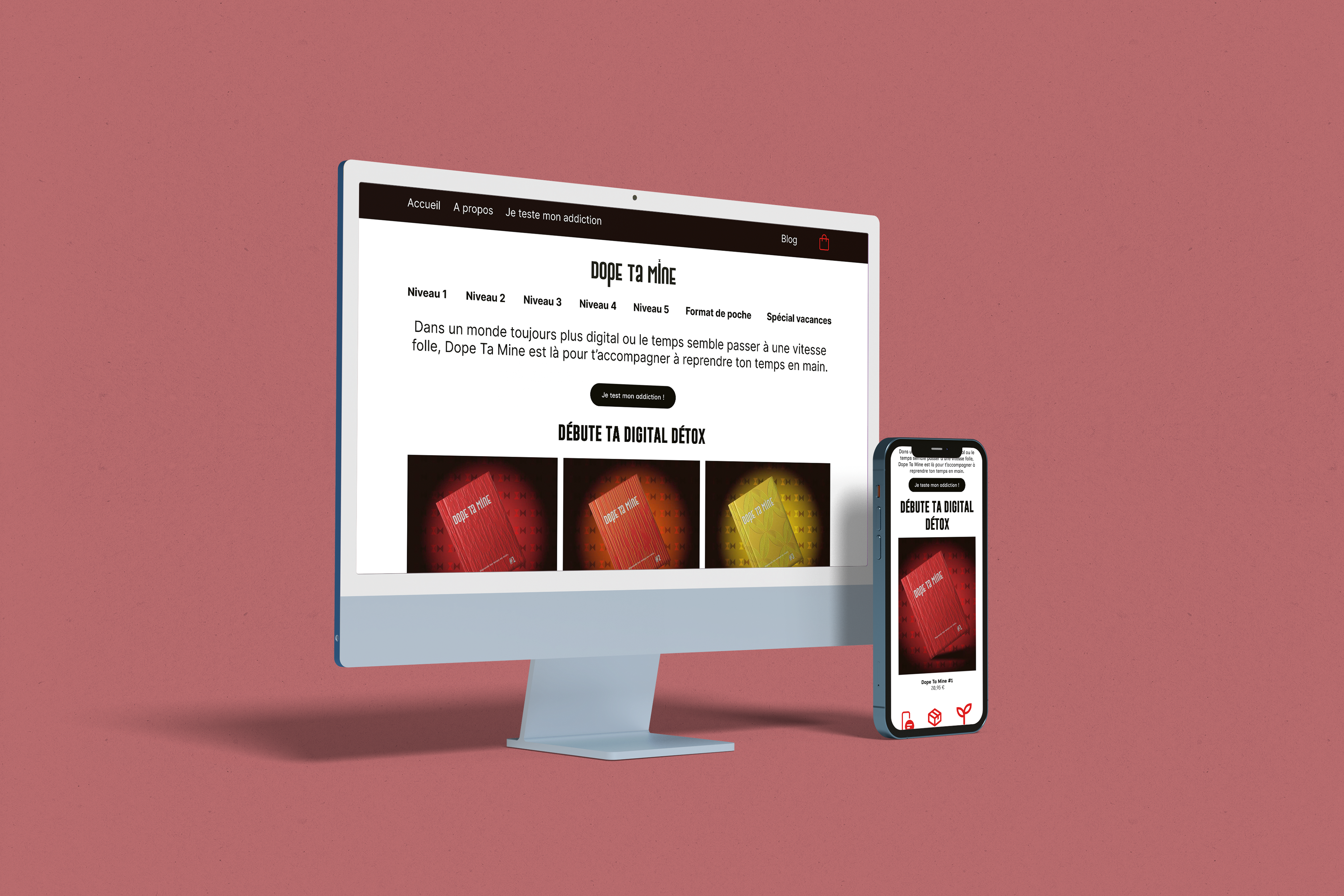 Pour le projet Dope Ta Mine il a fallu créer une maquette du site e-commerce avant la réalisation finale. J'ai donc réalisé une maquette prototype en mobile first et en desktop pour assurer un bon responsive à la réalisation.