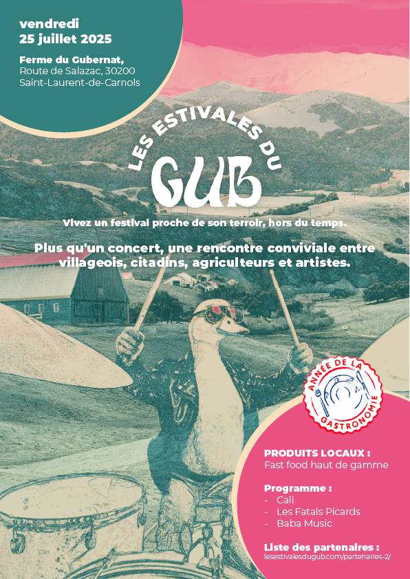 Les Estivales du Gub sont un événement culturel et festif qui se tient chaque été dans un cadre surprenant: la Ferme du Gubernat. Ce festival propose une rencontre conviviale entre villageois, citadins, agriculteurs et artistes.. L’objectif est de faire découvrir des artistes locaux, nationaux, ainsi des produits du terroirs.