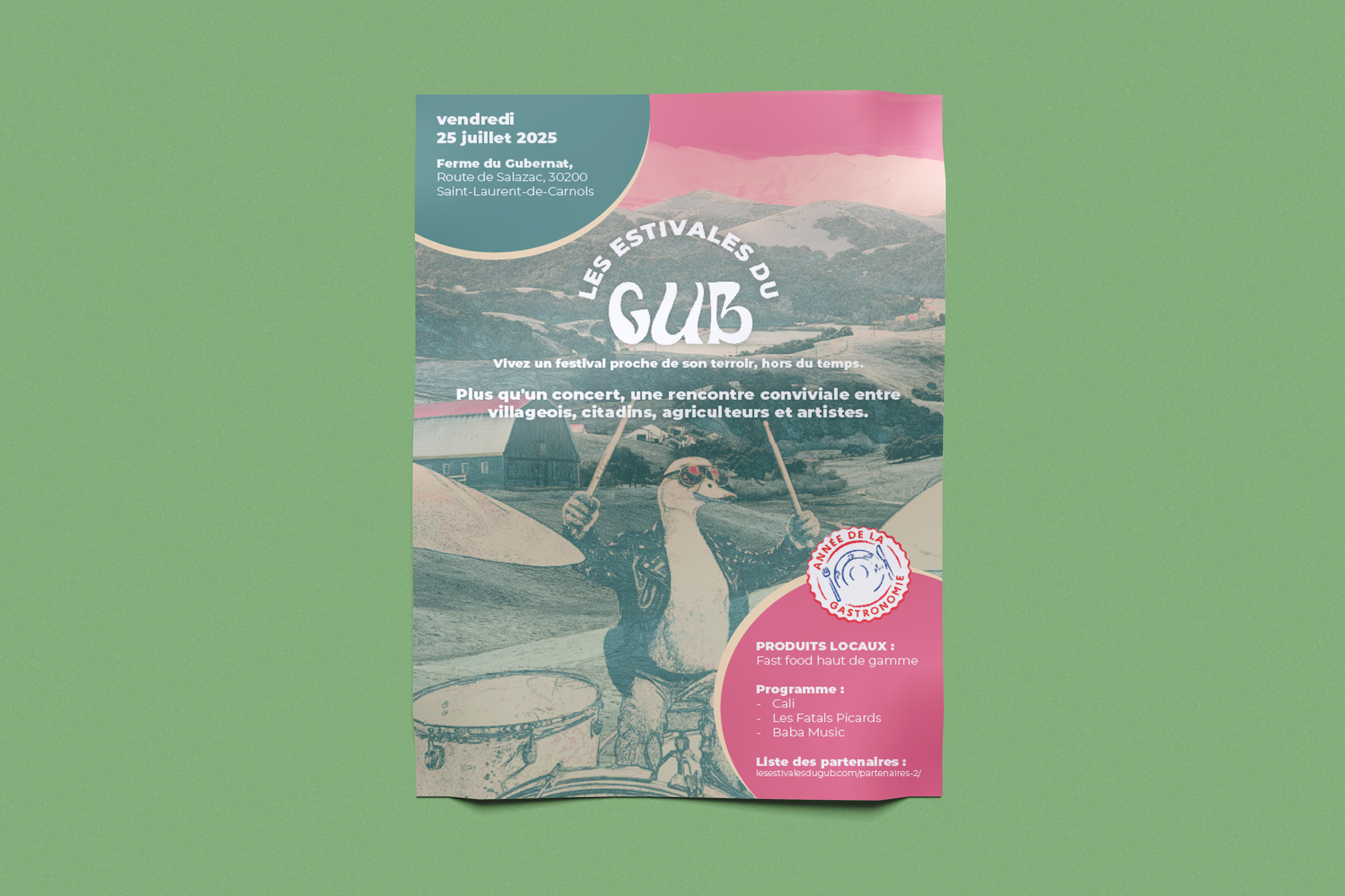 En ce mois d'octobre, le challenge postertober est lancé ! J'ai décidé de relever le défi, j'ai donc réalisé ce poster à cette occasion, pour les estival du Gub, qui est un festival qui met à l'honneur le canard.